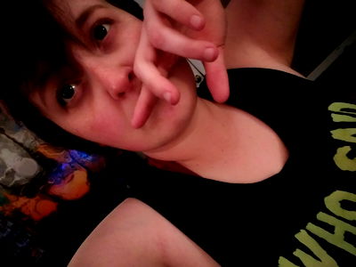 Candid snapshot of OnlyFans model Aspen Rivers, capturing a playful and relaxed moment during her visit to the vibrant Purple Roku town.