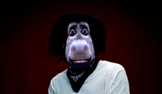 The image is a lighthearted and creative photograph of an individual wearing a full-body ape costume, likely for promotional or humorous purposes. This model's name on OnlyFans is 'Aesthetic Foot Long'. The background appears to be a simple indoor setting with a red hue.
