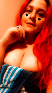 Astounding image of the renowned Onlyfans creator Astrid Flower. Her vibrant red hair is a striking feature as she poses seductively. She's captured in an intimate setting, adding a personal touch to this stunning portrait.