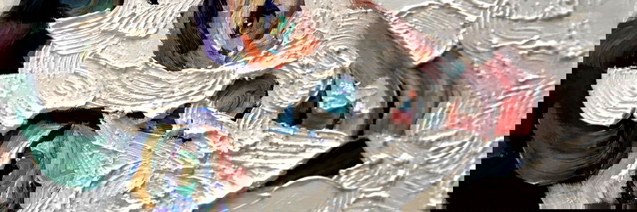 Vibrant, colorful abstract art print featuring bold shapes and patterns. Perfect for adding a pop of color to any room.