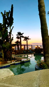 Selena G in a sleek black swimsuit lounging poolside with a glass of wine. Poolside relaxation captured by Tj.