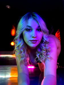 Athena, an OnlyFans model, shares a glimpse of her off-stage life in a private club. Caught mid-pose on the dance floor, she embodies the vibrant energy of the venue.