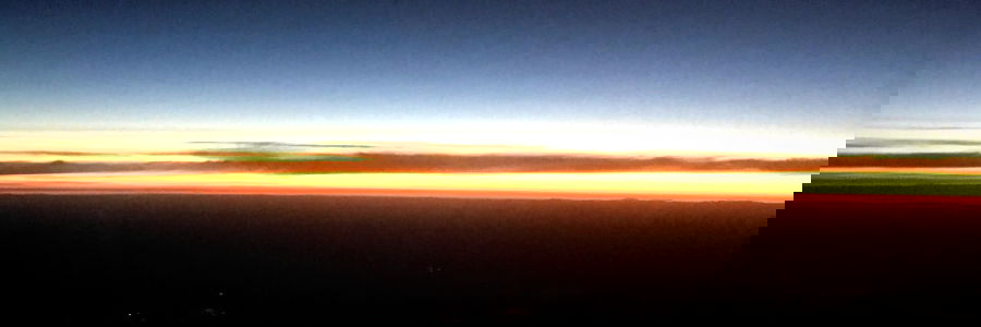 This image captures the breathtaking view of a sunset, with the colors transitioning from warm oranges and yellows to cooler hues of blues and purples. The layers of clouds in the sky add depth to the scene.