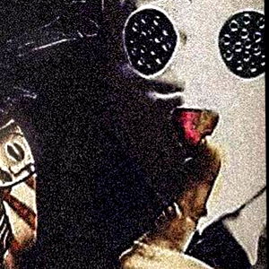 Onlyfans model photo of L'Aurelio with a cyberpunk or futuristic theme, featuring black and white color palette, circular patterns, and intricate details. Model is holding an object with circular holes. The setting is dark with some illuminated areas. The overall aesthetic suggests a blend of sci-fi and erotic elements.