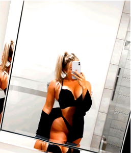 Model Aurora Burchette from Oslo, Norway captured in an intimate moment in front of the bathroom mirror. She is showcasing her lingerie, with a focus on confidence and allure. Her OnlyFans account has gained her a loyal fanbase, who appreciate her content. In this photo, she is seen in a black lingerie set, demonstrating how the garment fits and highlighting its features. The bathroom mirror reflects a well-maintained space, with a white tile wall and modern fixtures, adding to the overall aesthetic of the image.