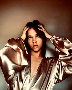 Deanyungbuji is a model who exudes confidence and beauty in this photo. She's captured in a moment of elegance, donning a silk robe that adds to her allure. With her gaze directed towards the camera, she presents a poised and captivating image.