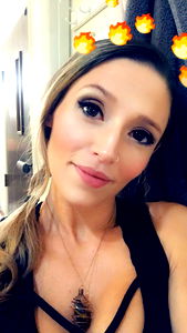 This is an image of a woman, possibly a model or influencer. She has light skin and is wearing makeup. Her hair is dark and styled. In the background, there appears to be a bathroom setting with towels visible. The woman seems to be in a relaxed pose for the photo. Please note that the content description should be accurate and respectful of the subject.