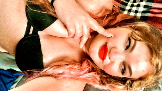 Meet Autymn, the vibrant and captivating model from OnlyFans. Her striking red hair stands out against her bold lipstick, adding to the overall allure of this eye-catching image.