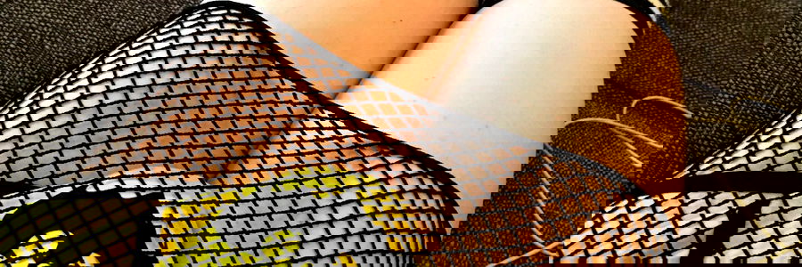 A model on OnlyFans, showcasing a unique and intriguing pose with a fishnet stocking. Model represents Manchester, UK.