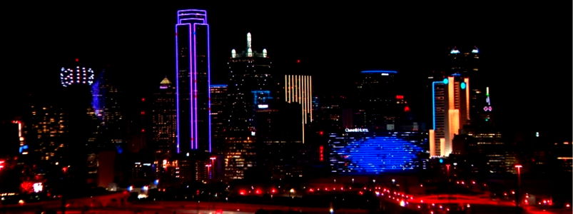 A captivating night scene of a city illuminated by bright lights, with a stunning view of the skyline under a dark sky. The image appears to be taken from a distance, showcasing both the vibrant urban life and the architectural structure of the city in the background.