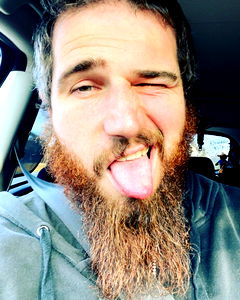 An Australian OnlyFans model showcasing his physique with a beard. The photo is in a portrait format and features a bearded man flexing his muscles for the camera.