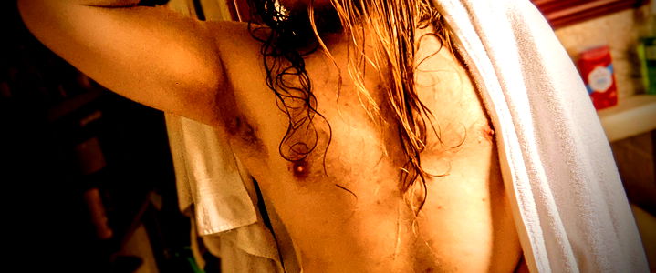 This is a black and white photograph of Ax, an adult male with long hair and beard. He wears glasses, and his pose suggests he's comfortable and familiar with the camera. The background is blurred, making it hard to discern details.