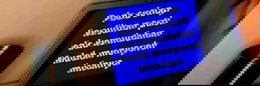 An individual engaging with digital content on a laptop, reading an excerpt in the Indonesian language
