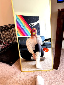 AzaleaFoxx captures her reflection in a bathroom mirror. She's taking a casual, candid selfie with a phone.