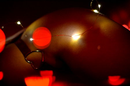 OnlyFans model posing in vibrant lighting and red filter. Image captures an intimate, candid moment.