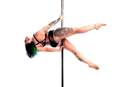 Explore the world of aerial pole dance with Nyx Nova. Get inspired by her athletic and graceful style in this striking image. Her journey to mastering the art of aerial pole dance is captured here. Experience the thrill and excitement of pole dance through her eyes. #PoleDance #Fitness #Performance