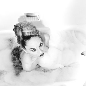 Babs is a captivating OnlyFans model who exudes confidence and elegance. She's currently relaxing in a bubble bath, her hair styled upwards, and is looking directly into the camera with an intriguing expression.