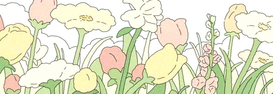A charming illustration of a bouquet of tulips surrounded by green plants, set against a white background. The vibrant colors and simple yet detailed style make this image appealing.