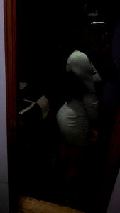 A candid shot of Abru from her home, captured in the midst of an activity. She's donned in casual attire and appears to be in a playful mood.