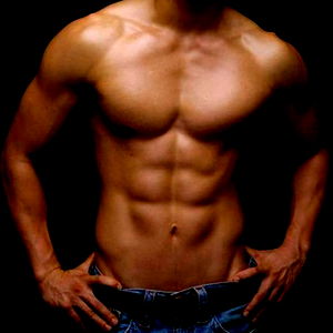 Striking image from OnlyFans Model Baby Bad, highlighting his toned physique with a close-up view. The model is shirtless, revealing his well-defined chest muscles and abs, emphasizing his dedication to fitness.