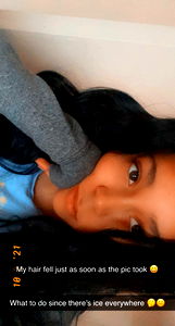 The image is a selfie of a model, likely from social media platform OnlyFans. The model, known as BabyCakes, appears to be excited and looking away from the camera. She has dark hair and is wearing what looks like a blue top. The text in the image suggests she's sharing a moment or activity, but the context isn't clear. There's no visible text providing specific information about the model.