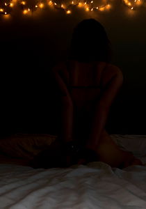 The image shows a female model with dark hair, posing confidently in lingerie. She appears to be 23 years old and identifies as female. The photo seems to be taken in an indoor setting, possibly a bedroom or studio. Tags related to the content of the image could include lingerie, boudoir, adult content, OnlyFans, photography, modeling, self-confidence.