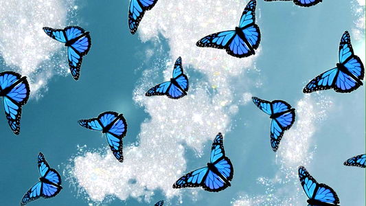 This is a promotional model photo featuring the Onlyfans model named Baby Cheeks. The image showcases her in a serene setting with a backdrop of blue butterflies that add an ethereal touch. The tags associated with this photo are likely to include fashion, lifestyle, beauty, and possibly travel or nature given the butterfly theme.