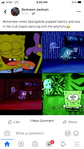 A post on OnlyFans by model Ally, from Bronx, New York. It features a humorous meme comparing SpongeBob and Patrick Star to reality dancers, with an Instagram handle for following the creator's posts.
