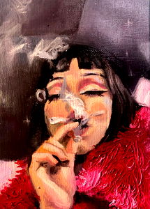 A striking and confident model poses on stage in this image, embodying the boldness of her character. Isa stands out with her unique style, captivating the audience's attention.
