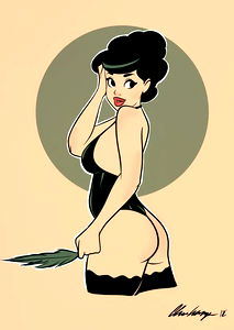 A vibrant illustration of the OnlyFans model BabyRedx in a revealing and seductive pose, exuding confidence with one hand on her hip.