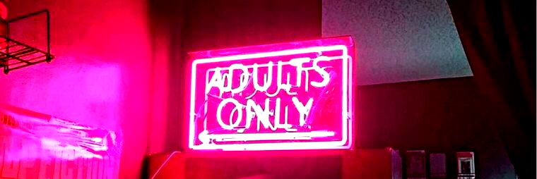 A neon pink sign with the words 'Adults only', prominently displayed in a dark setting, with Gab's OnlyFans written below it. A unique and striking piece of decor that signifies an exclusive membership for adult content.