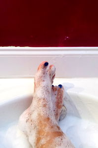 The BDECreoleQueen lounges comfortably in her bubble bath, surrounded by white suds. Her long, tanned legs are elegantly crossed over each other, hinting at the relaxation and tranquility she is experiencing. The setting suggests a moment of indulgence amidst a hectic schedule, with only the toes peeking out from under the bubbles. This image captures the essence of self-care in its most luxurious form.