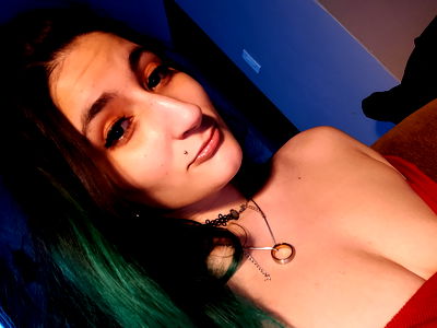 A young woman with mesmerizing blue hair and striking green eyes. She showcases her playful personality in this OnlyFans photo, with her charming smile and engaging gaze.