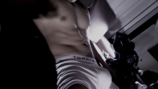This is a black and white photograph captured indoors, featuring a person who appears to be a man. The setting appears to be a room, possibly a bedroom or a studio. The individual is the main subject occupying the majority of the frame, their presence contributing significantly to the overall atmosphere of the image. The black and white color scheme enhances the dramatic effect of the scene, giving it a timeless and classic feel. The person in the shot is wearing underwear, which suggests a sense of intimacy or vulnerability. Whether this was a personal shoot or a professional one, the choice of attire certainly adds depth to the narrative. It's worth noting that the focus is not merely on the person but also on the surroundings, highlighting the interplay between the subject and the environment. Despite the lack of distinct landmarks or famous faces, the image conveys a strong sense of character and mood. The score given to the tag 'person' is quite high, indicating the figure's prominence in the photograph. The 'man' tag, while not as high, still suggests the subject's probable gender. This picture could be part of a larger thematic collection or a standalone piece, its simplicity and stark contrasts making it a compelling and evocative image.