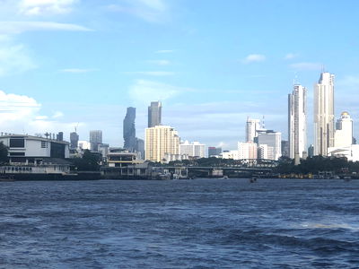 A relaxing day on the water, enjoying the city's skyline and architecture. The calm river provides an excellent vantage point for sightseeing.
