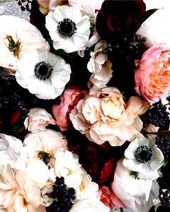 This piece of art is a beautiful representation of the still life genre. The artwork features an array of vibrant flowers and leaves, arranged in a bouquet that creates a sense of balance and harmony. The use of color, light, and shadow brings the flowers to life, capturing their delicate details with precision. This artwork is a testament to the artist's skill in painting natural elements, and it would make a lovely addition to any home decor.