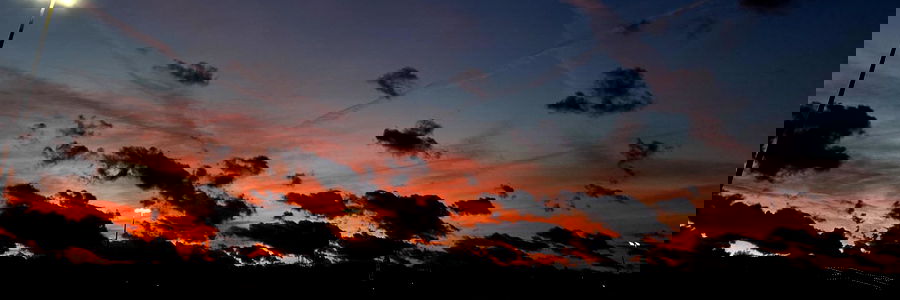 A tranquil scene featuring a picturesque sky at sunset or sundown, blending the warm hues of sunset into the cool tones of nightfall. The city lights in the background suggest an urban setting, while the mist and soft focus add a dreamy atmosphere.