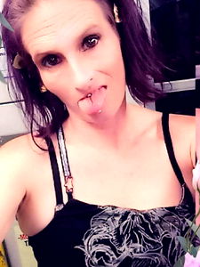 A confident and fashionable OnlyFans model is captured in a mirror selfie, striking a pose with her tongue out. Her style includes a black tank top with an intricate design and matching jewelry.