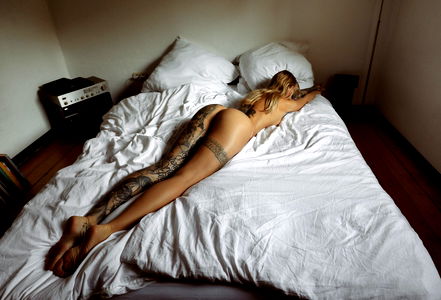This image captures a model in the midst of a professional photo shoot. The model is a woman with long hair, showcasing her slim, toned body, particularly her abdomen. She is adorned in a fashionable lingerie set, consisting of a brassiere and underpants, which both appear to be high-end, possibly from a luxury brand like Agent Provocateur. The lingerie top intricately wraps around her chest, while the panties snugly fit around her waist and hips, emphasizing her feminine curves. Her stomach is flat and her navel is visible, adding to the allure of the picture. The undergarment she's modeling could also be mistaken for a swimsuit bottom, hinting at its versatile use. The lingerie is not just clothing, but a form of art, turning the woman into an art model. This image captures the essence of modern fashion, blending the lines between comfort, sensuality, and style. It's a testament to the power of fashion in shaping perceptions of beauty and femininity.