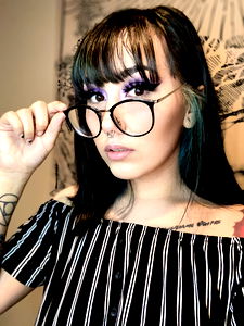 Model Blessly captures attention with her fashionable eyeglasses and bold makeup. She is seen wearing a stylish outfit that includes striped shirts and a tie. The photo seems to be taken indoors, possibly at an event or in a casual setting. Blessly's pose is confident and engaging, showcasing her personality and appeal.