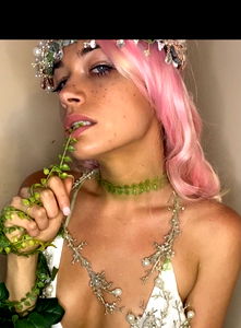 This image captures a stunning young woman, estimated to be around 22 years old, showcasing an array of fashionable accessories. The focus of the image is undoubtedly her face, where her expertly applied makeover is on full display. Her makeup features rich tones, with a bold lipstick that draws your attention to her lips. Her accessories are equally captivating. She is wearing a statement necklace, which adds a touch of glamour to her look. The necklace is brilliantly complemented by a pair of earrings. These pieces of jewellery collectively add an air of sophistication to her overall look. Adding to her allure is a remarkable headpiece that she wears with great poise. The young woman's outfit, although not entirely visible, seems to be finely selected, suggesting a keen sense of style. The image appears to have been taken indoors against a simple wall backdrop. This setting puts the spotlight entirely on the woman, allowing her beauty and fashionable ensemble to shine unimpeded. This image could be from a fashion photoshoot or a special event, given the level of detail in the woman's appearance. The young lady exudes confidence and elegance, making this a captivating image.