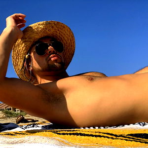 McAllen Tx native BraiNWa$h basks in sunshine, donning a straw hat and sunglasses. His casual style is on full display as he leans back on a towel under the bright sky.