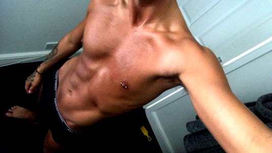 A revealing image of a fit, shirtless man with an athletic build. He is indoors and appears to be in his early twenties.