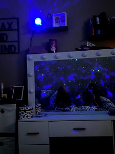 This image is set within an indoor setting, presumably a room, as hinted by the presence of a wall, floor, and shelf. Dominating the frame is a person, specifically a girl or woman, which is the focus of the photo. She's seen in full length, her body positioned in such a way that brings attention to her thigh. It's clear that she's all dressed up, her attire suggesting an interest in fashion. She's wearing clothing that fits well and looks stylish, a testament to her sense of style. Matching her outfit is a pair of footwear, the design of which adds a final touch to her overall look. A mirror nearby reflects her image, doubling the focus on her. The human face is also prominent in the photo, expressing an emotion that adds a layer of depth to the image. The shelf in the background provides a hint of the room's purpose, perhaps a dressing room or a personal space. The whole scene seems to be a blend of personal style and indoor living environment.