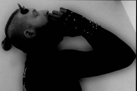 This is a striking black and white portrait of an Onlyfans model, known for their tattoos. The image captures a strong and confident pose, with the model standing against a simple background that puts emphasis on their ink. The image composition is modern and edgy, with high contrast that adds depth to the photo.