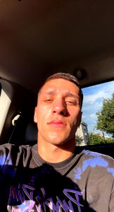 Bryce Pond, an OnlyFans model known for his expressive eyes and confident presence, captures a candid moment inside a car. He is seen with a thoughtful expression, leaning on the door of the vehicle.