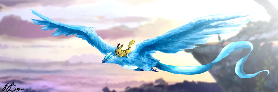 A vibrant illustration inspired by anime, featuring a majestic bird soaring over a serene landscape. OnlyFans model BubblegumGhost is showcased in this piece.