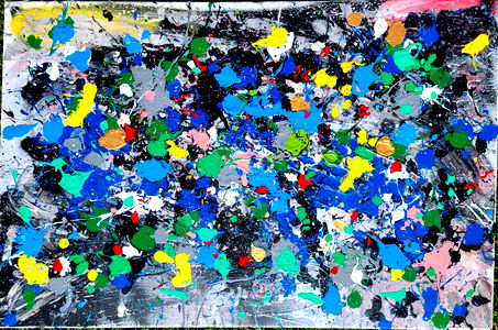 A captivating abstract art piece, bursting with vibrant hues and geometric shapes. The colors range from the deep blues to the bright yellows and beyond, creating a mesmerizing visual experience. This work of art would make a striking centerpiece in any room.