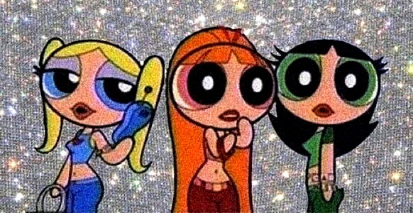 This is a stylized digital artwork featuring a character from the animated series 'Power Puff Girls'. The character is styled in a way reminiscent of a social media post, holding a phone and seemingly looking at it. The art style includes vibrant colors, playful bubbles, and a casual pose.