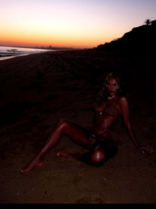In this captivating image, the London-based model ๐ exudes confidence and elegance as she poses amidst a picturesque beach setting. The warm glow of sunlight illuminates the scene, creating an atmosphere of serenity. Her style is on full display, making her the undeniable focal point against the backdrop of the sandy shore and the inviting azure ocean. This model photo encapsulates a perfect blend of beauty and tranquility.